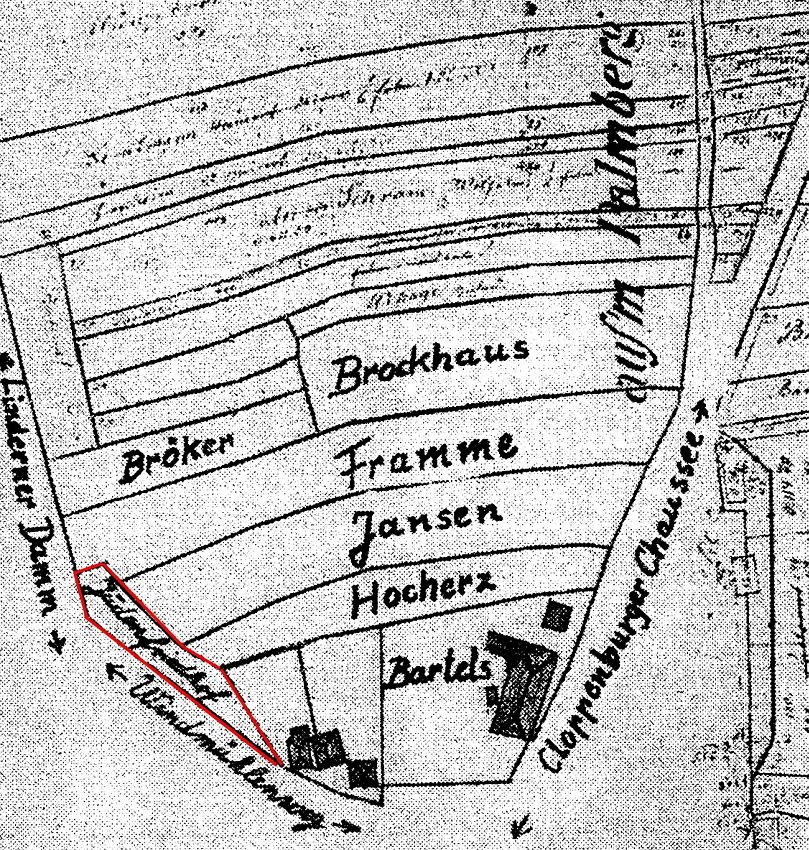 "in Verbindung [gebracht werden] mit dem in der Nähe am Windmühlenweg liegenden Judenfriedhof vor 230 Jahren angelegt, auf dem die Leichen der Löningen Juden im Jahrhundert zwischen 1750 und 1850 bestattet