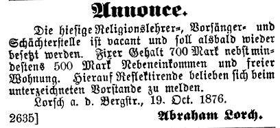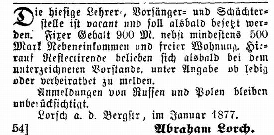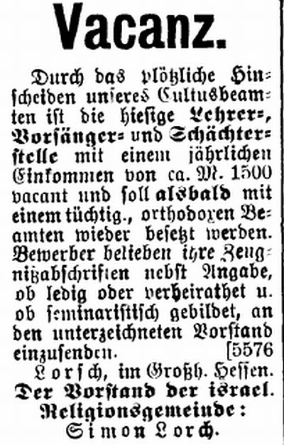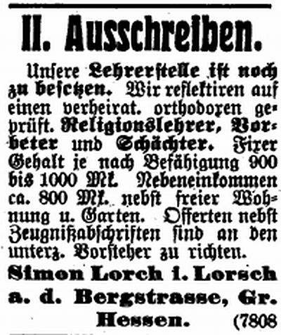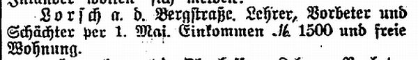 Lehrer angestellt, der zugleich als Vorbeter und Schochet tätig war. Als