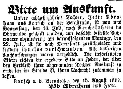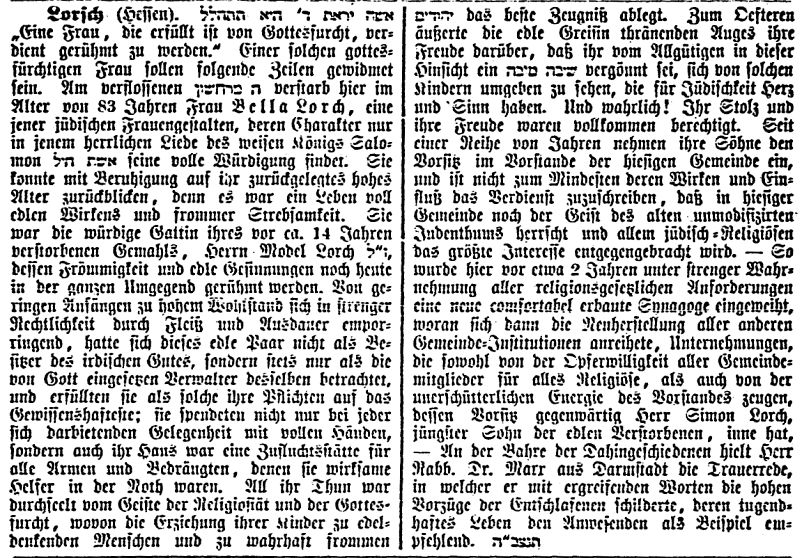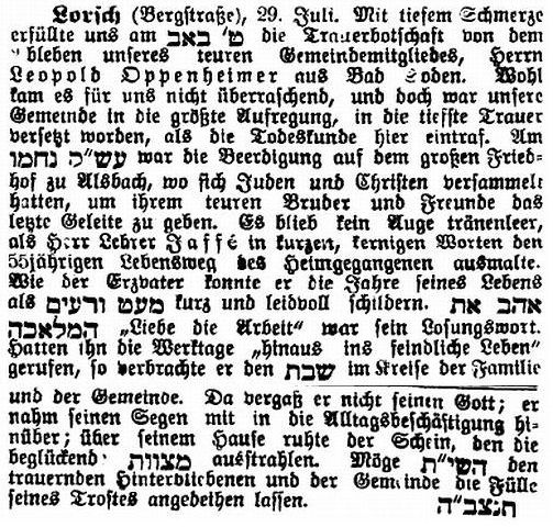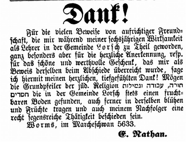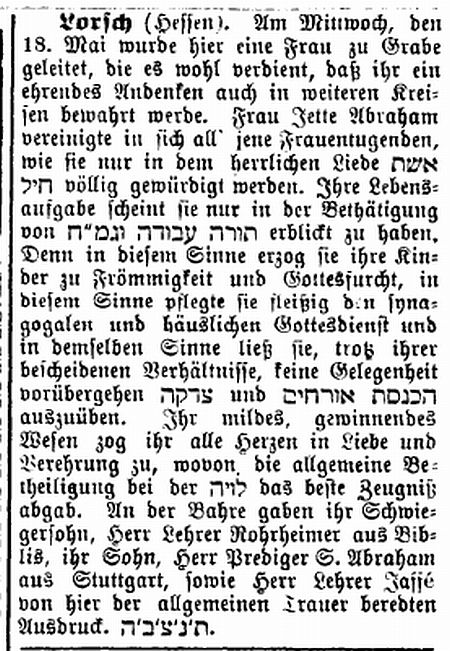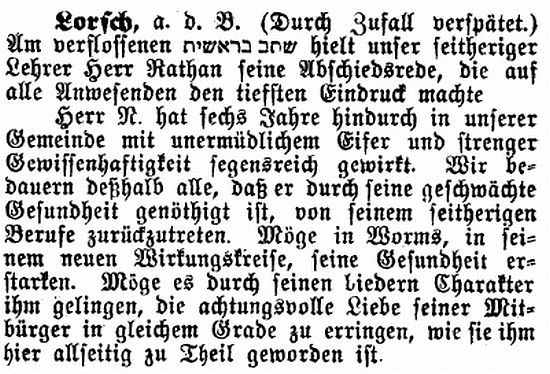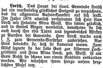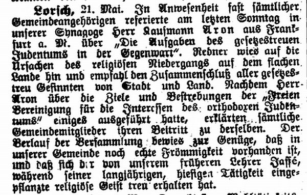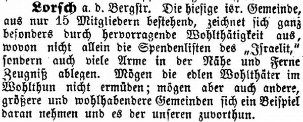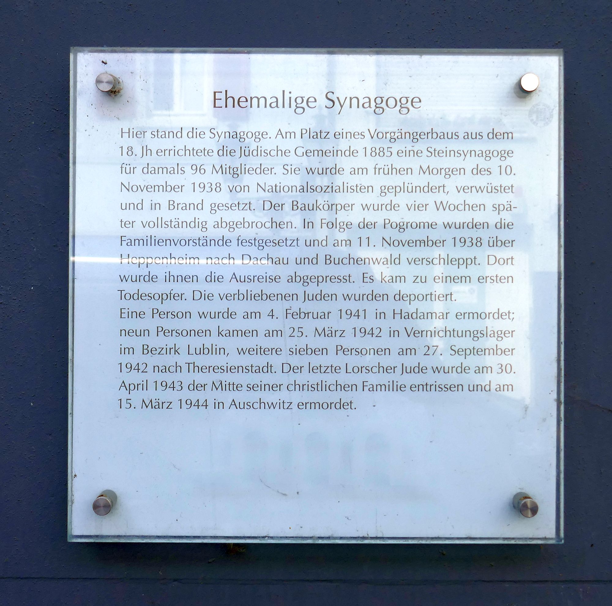 In Lorsch bestand eine jüdische Gemeinde bis 1938. Ihre Entstehung geht in die