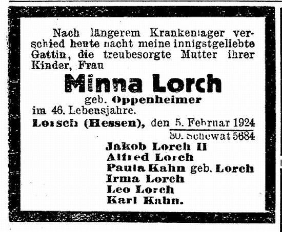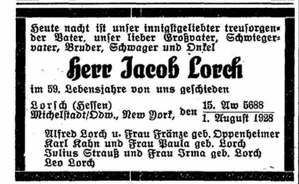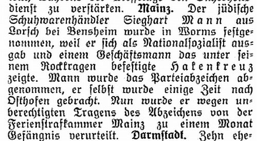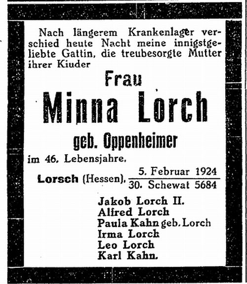Drei Lorscher Familien hatten in Folge der Übergriffe 1938 unmittelbar Tote