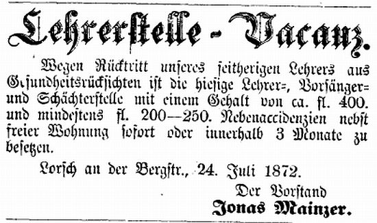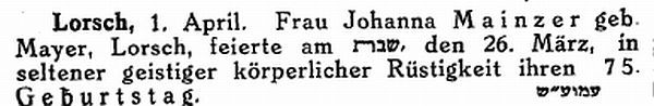 Lorsch nieder und nahm später den Familiennamen "Mainzer" an. Die