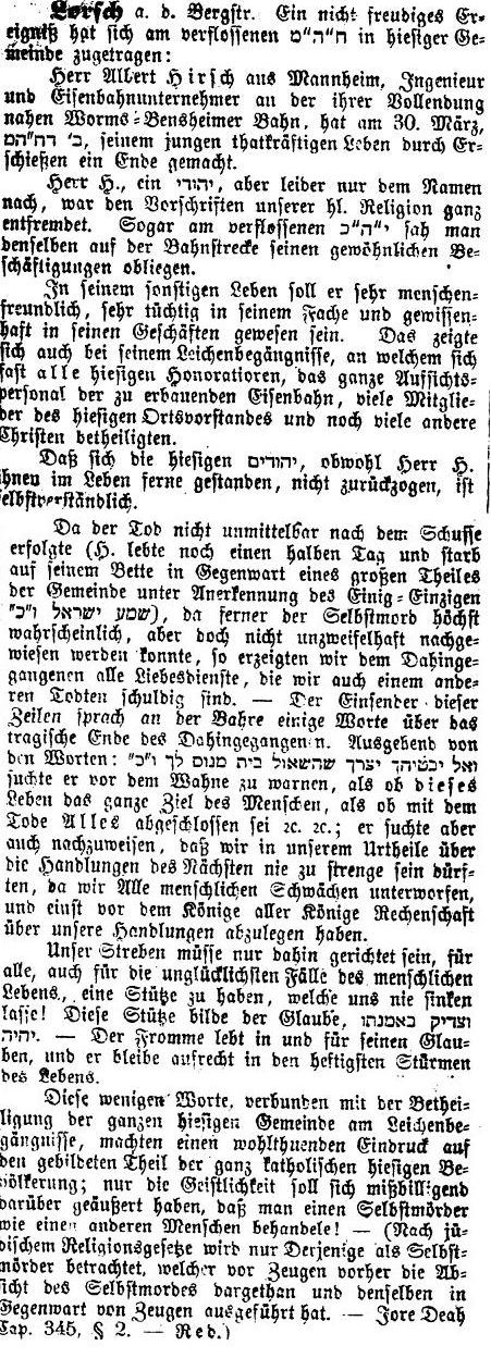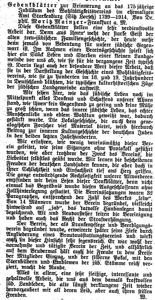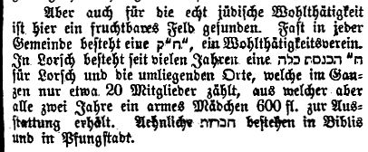 Bensheim. An jüdischen Vereinen bestanden der Israelitische