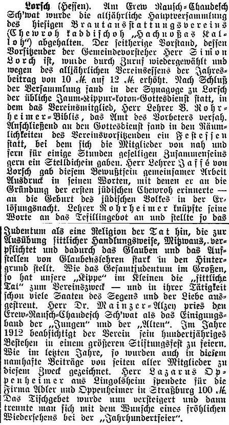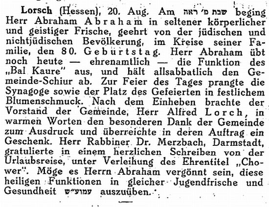 und Lazarus in Lorsch, Hersch in  Kleinhausen, seit 1937 zusammen mit