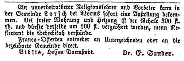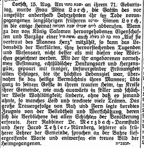 Damals werden drei jüdische Familien in Lorsch und Kleinhausen genannt (Simon