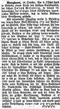 Artikel in der Zeitschrift "Der Israelit" vom 20. Oktober 1884: