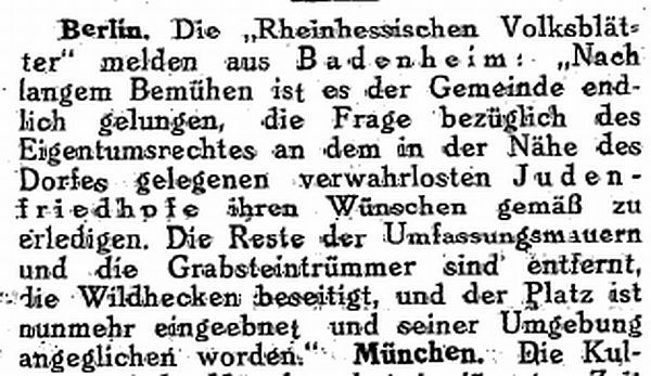 jüdischen Friedhof gab, von dem heute keine Spuren mehr erhalten