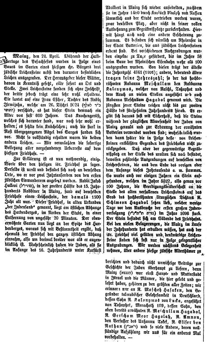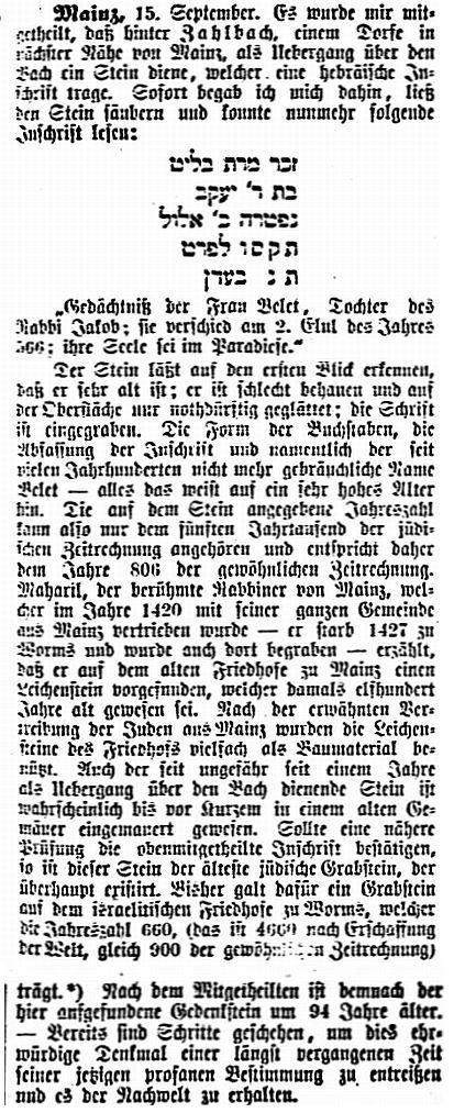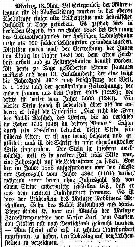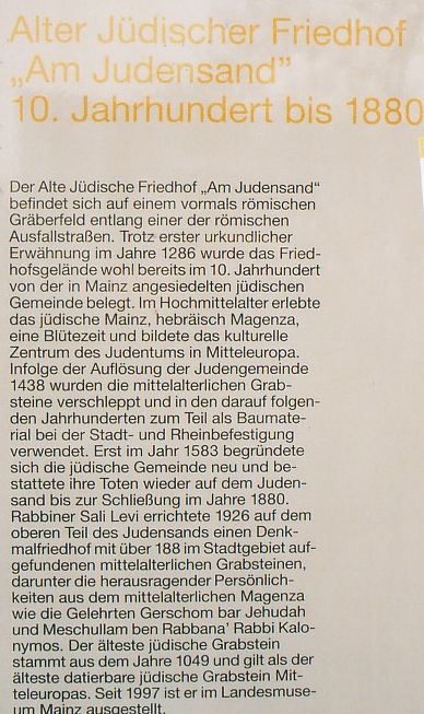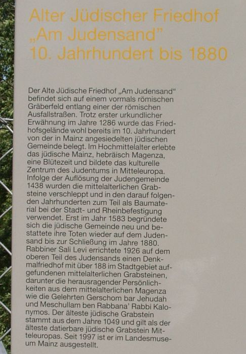 von dem 'Alten jüdischen Friedhof Mainz' auf dem Judensand, der im 11.