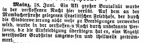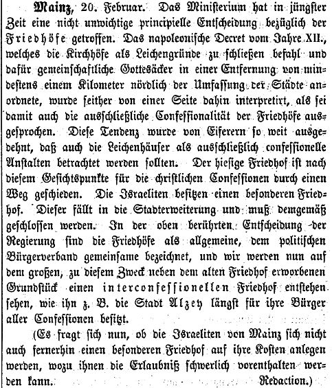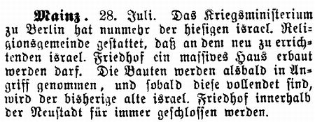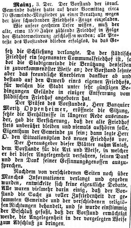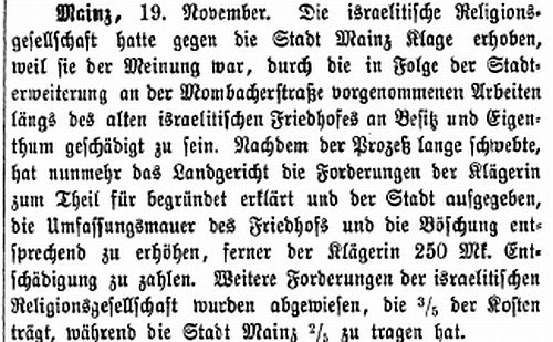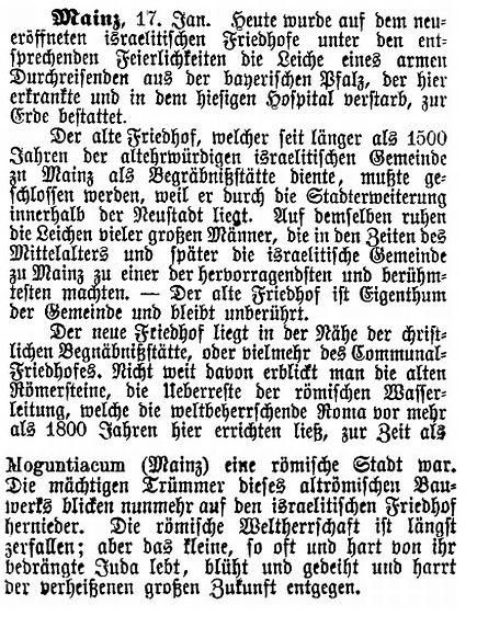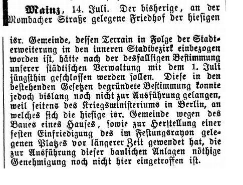 "alten Judensand" an der Mombacher Straße an. Dieser Friedhof wurde