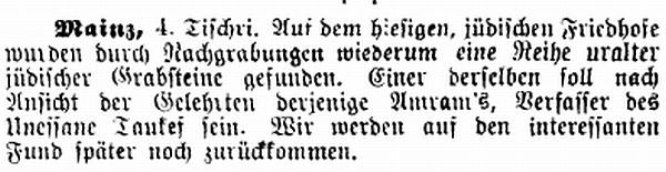 jüdischer Tradition' in Mainz. Denn die Stadt bildete damals zusammen mit