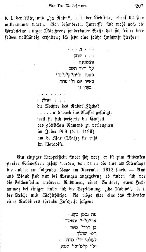 frei. Es wird vermutet, dass die Grabsteine nach dem Pogrom von 1438 von