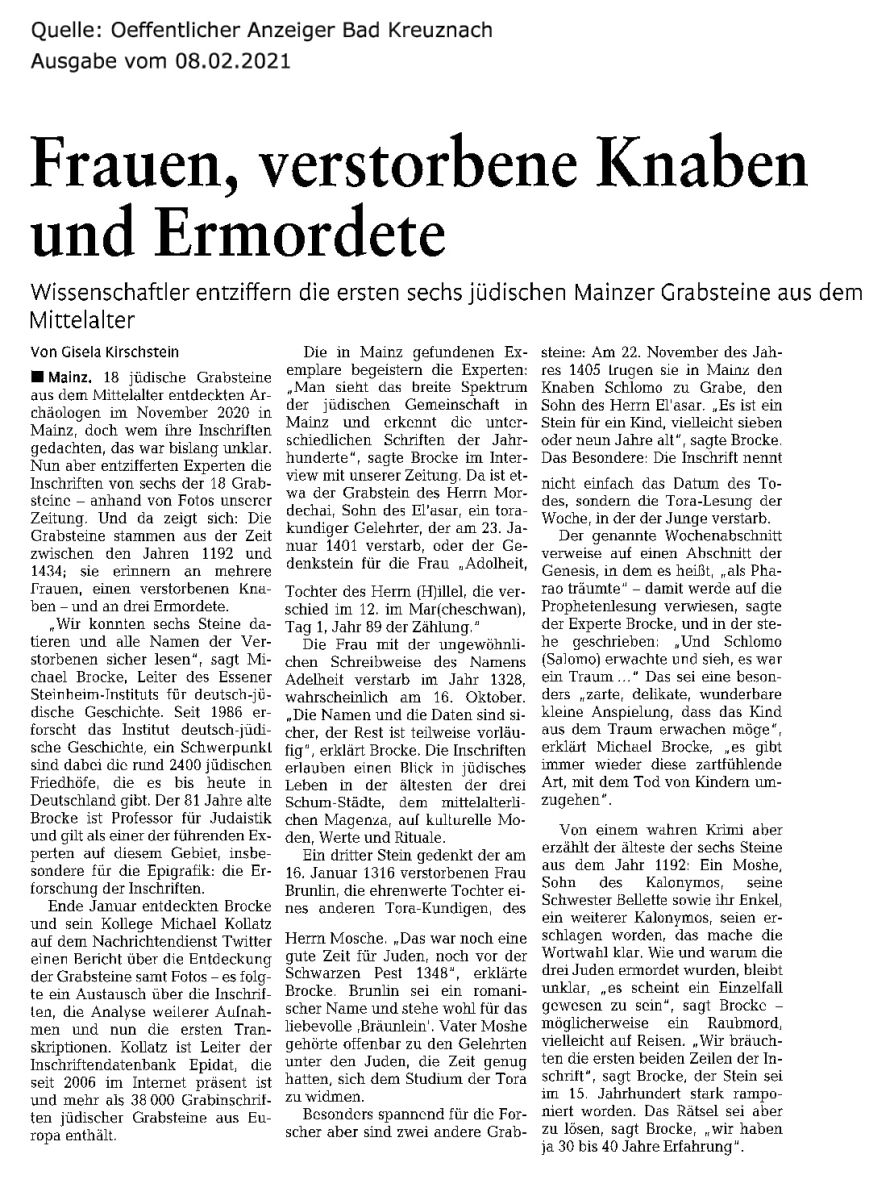 Wallocha in der "Frankfurter Neuen Presse" vom 6. Februar 2021: "Archäologie.