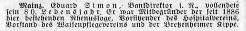 bekannt: Leo Bondi, geboren am 1. September 1862 in Mainz.