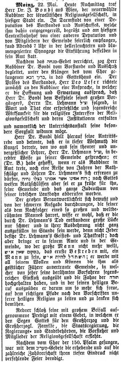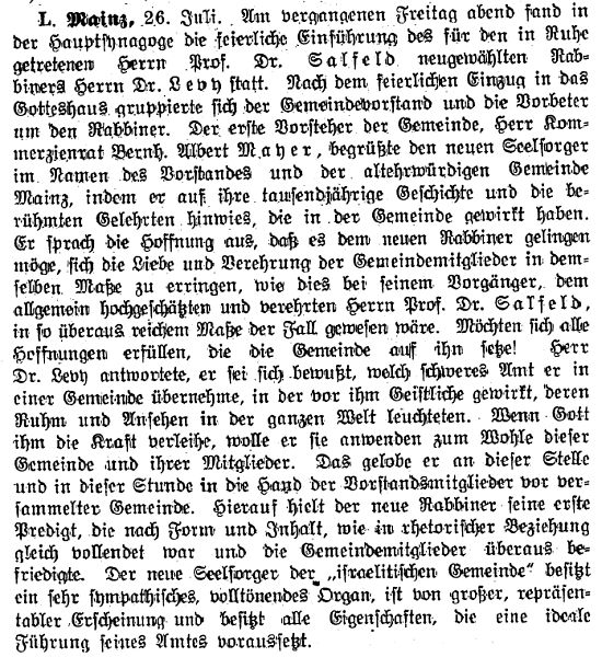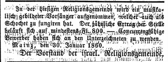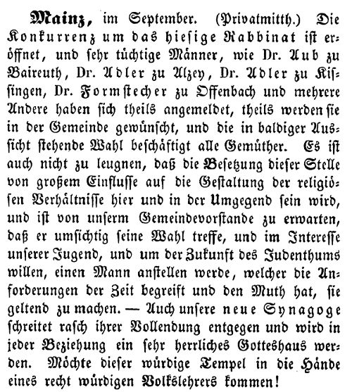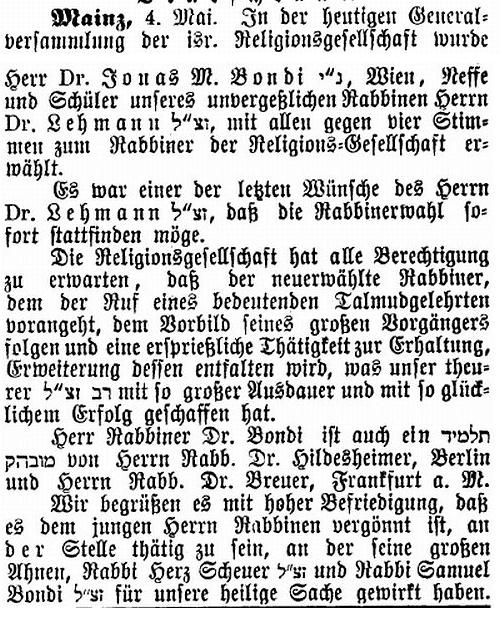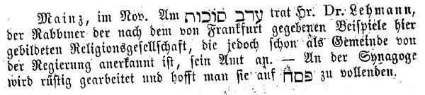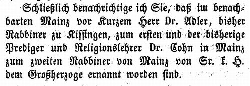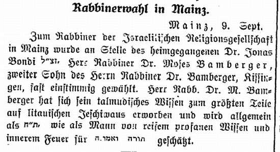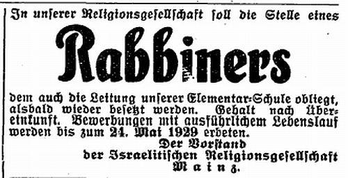 jüdischen Gemeinde Mainz zum Rabbiner gewählt, doch wurde ihm die