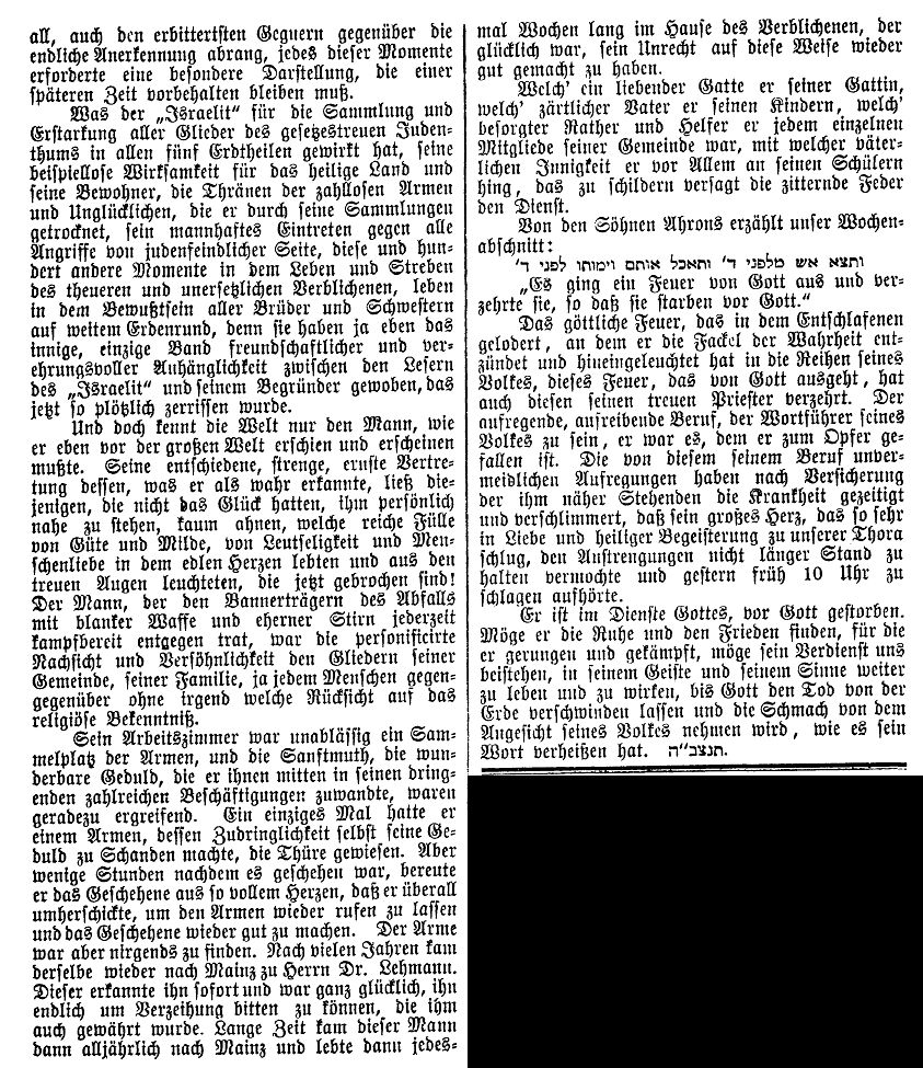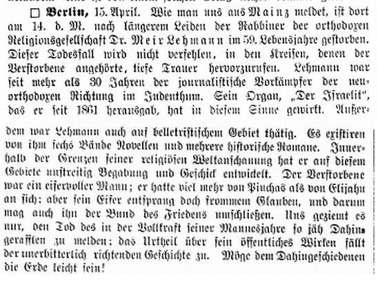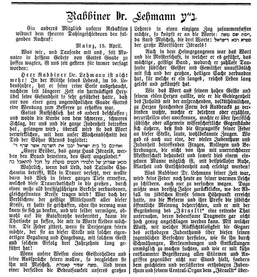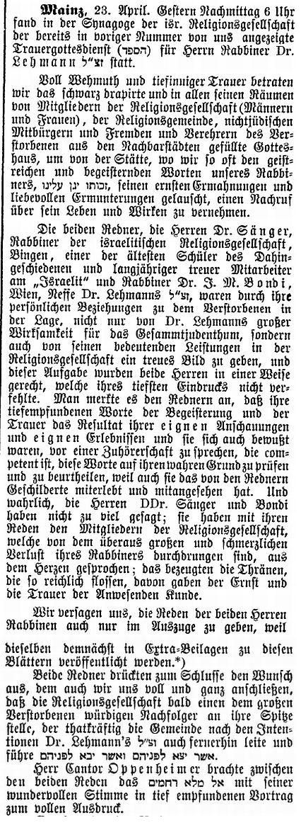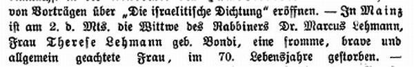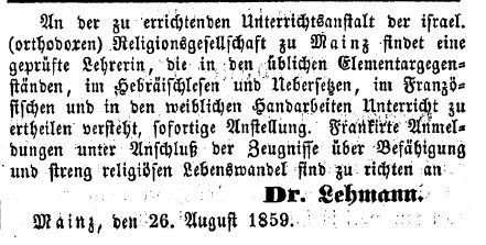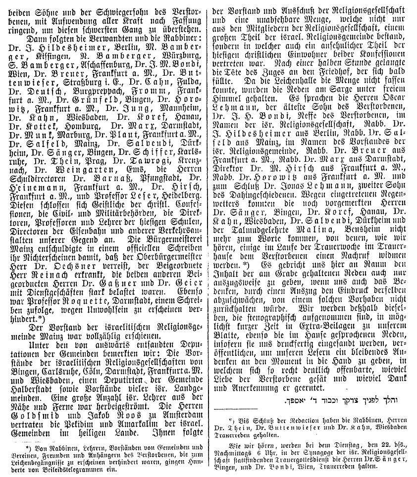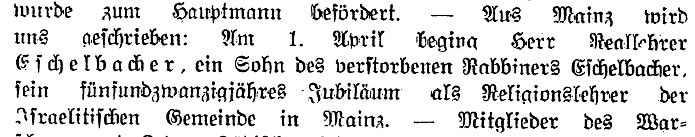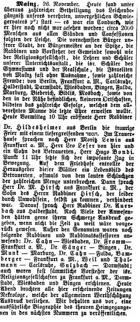 von 1829 bis 1852 Rabbiner in Bayreuth, seit Dezember 1852 in Mainz