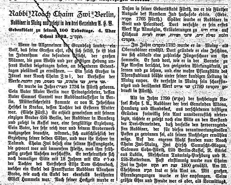 Chaim Zwi) Berlin (geb. 1734 in Fürth, gest. 1902 in Altona): war