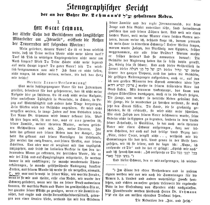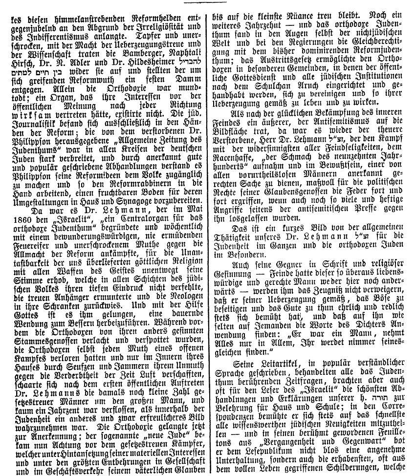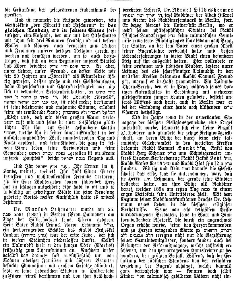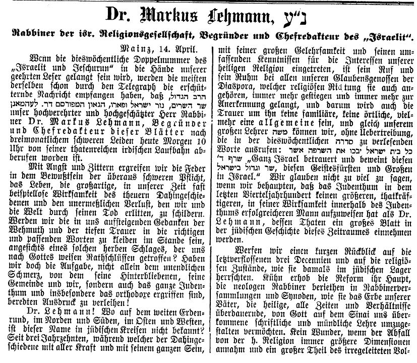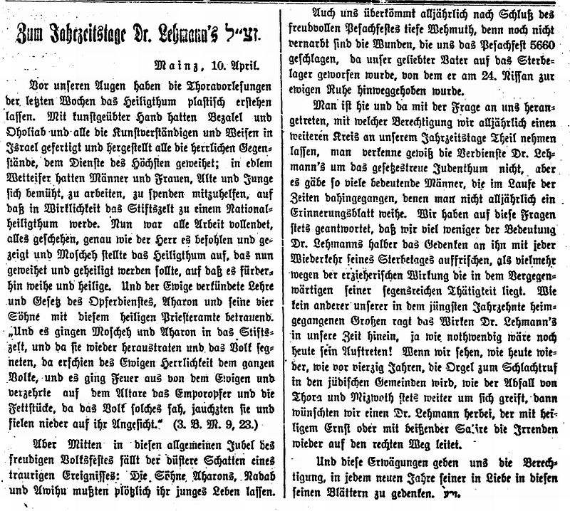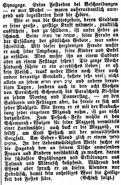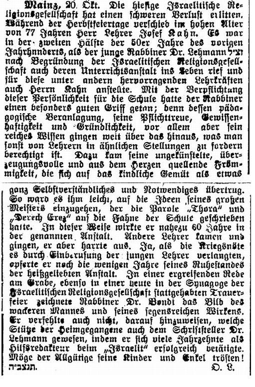 in "Der Israelit" vom 30. Januar 1930: "Lehrer Abraham Oppenheimer.