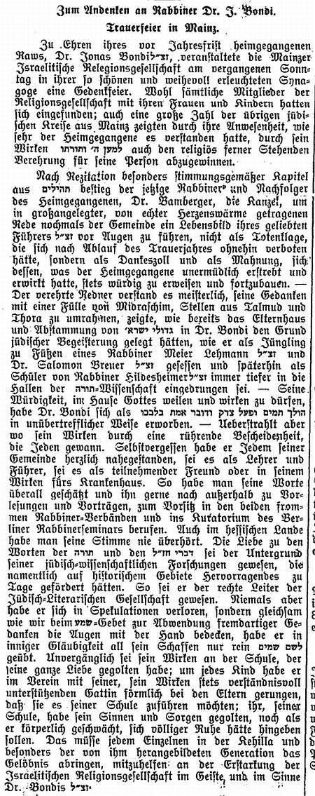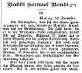 Rabbiner Dr. Jonas Bondi - das Gedenken an den Gerechten ist zum Segen -,