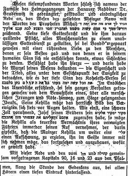 vor sich. Unser Rabbiner, Herr Dr. Bamberger, fand warme Töne zur