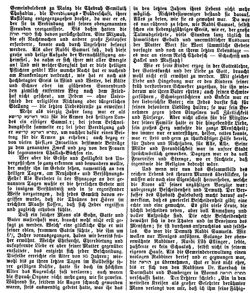 Landesrabbiner in Mainz und von 1800 bis zu seinem Tod 1902 Oberrabbiner von