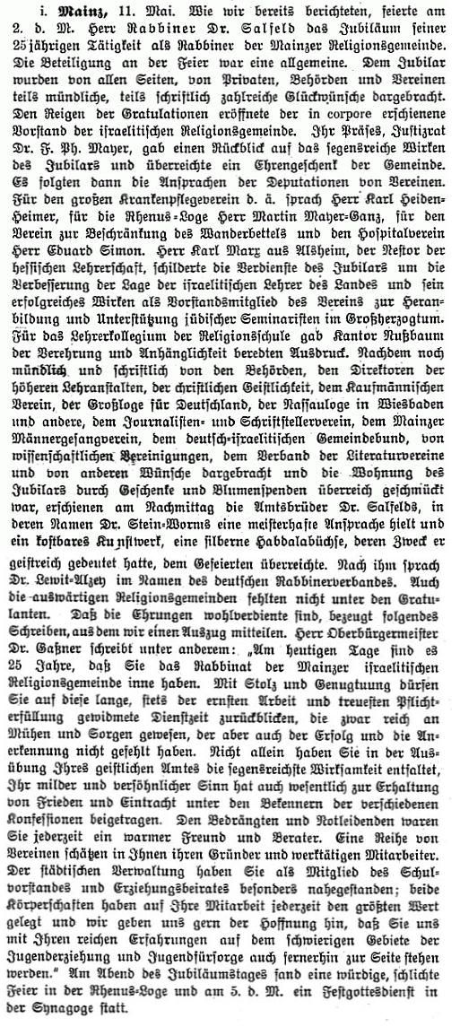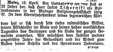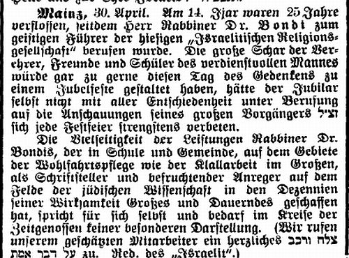 Beiträgen zur jüdischen Geschichte in Mainz wurden in jüdischen Periodika