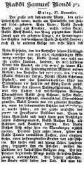 1808 Dajan in Mainz und Talmudlehrer an der Jeschiwa; nach dem Tod des
