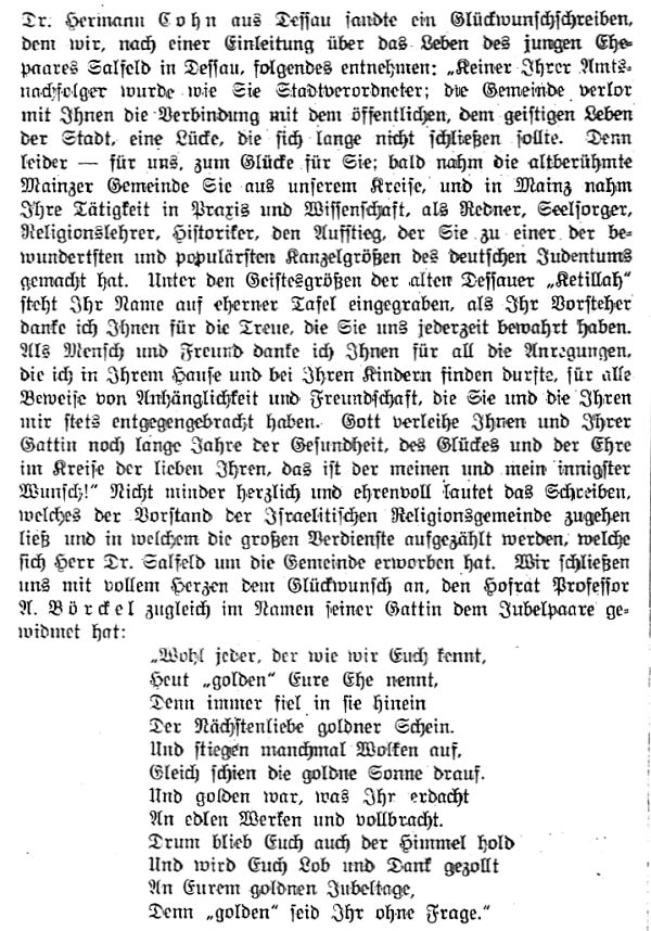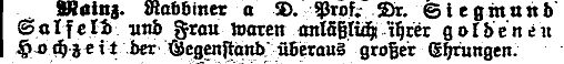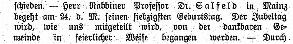 | 1880 bis 1918: Rabbiner Prof. Dr. Sigmund Salfeld