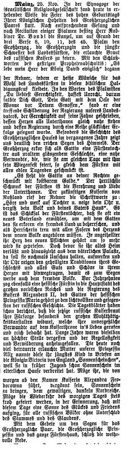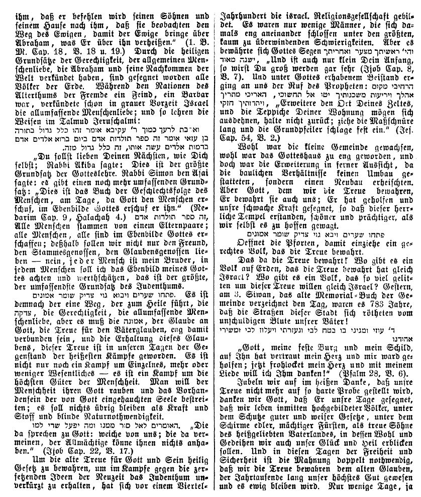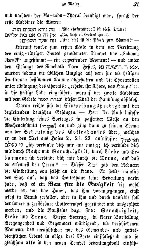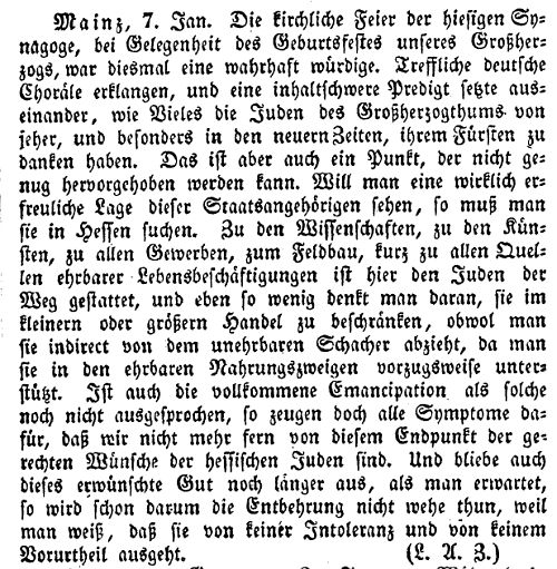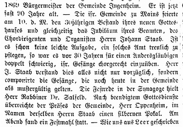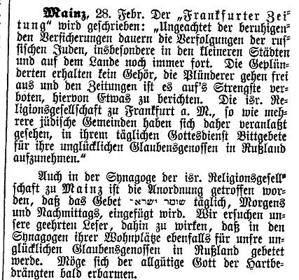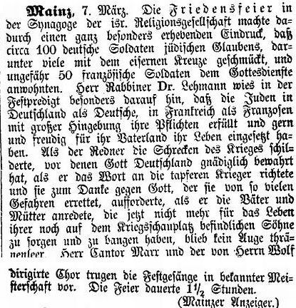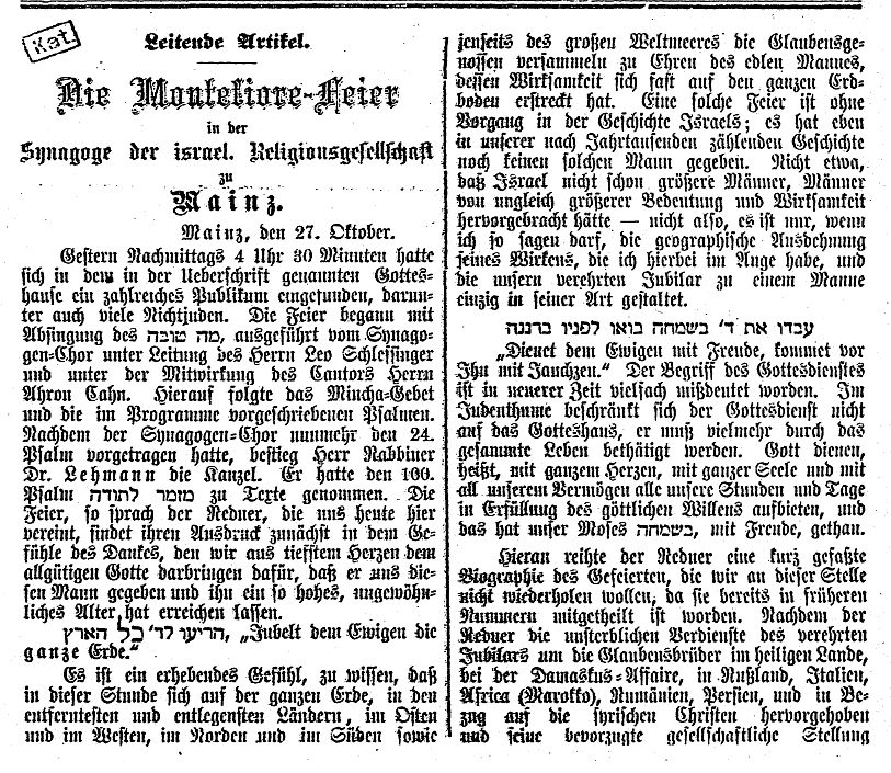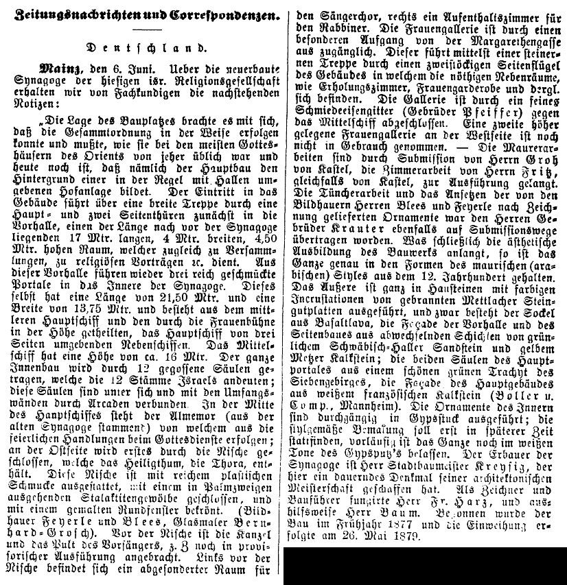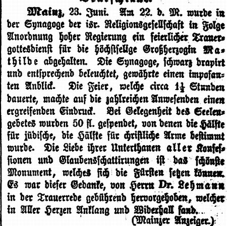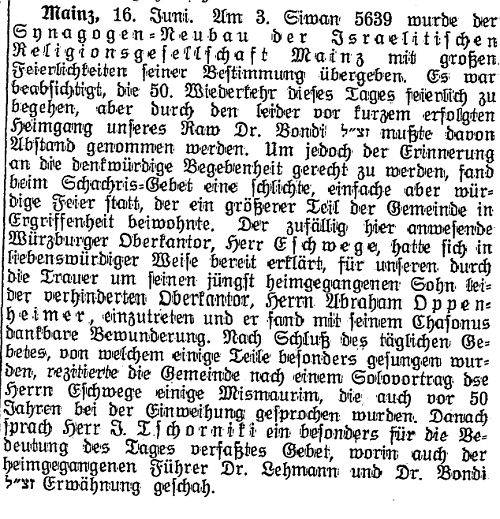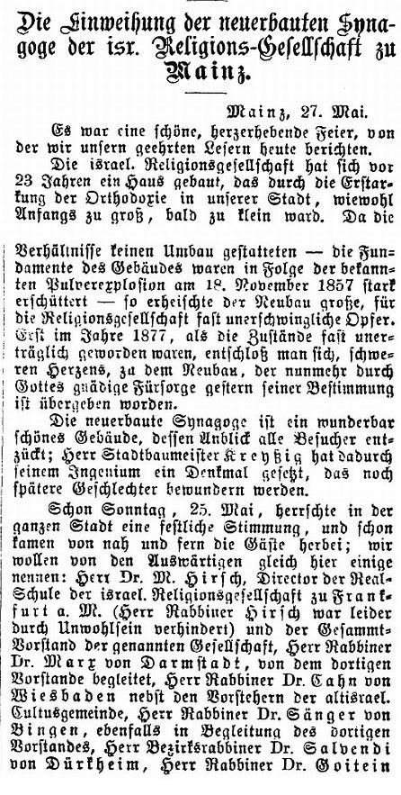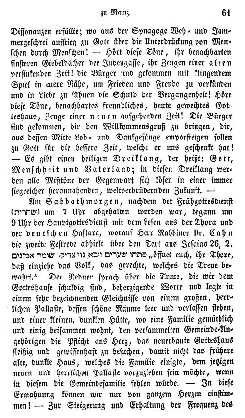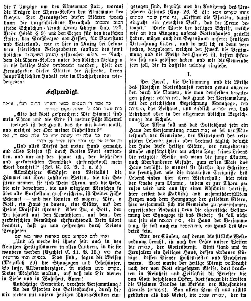 Wiederkehr des Einweihungstages (11. März 1853) der Hauptsynagoge. Mainz