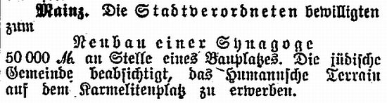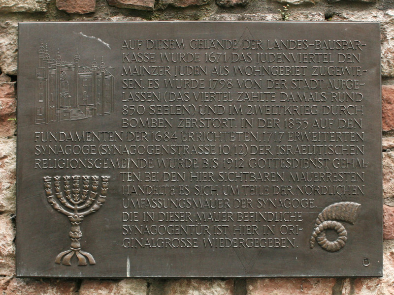 In Mainz bestand eine bedeutende jüdische Gemeinde zunächst im Mittelalter