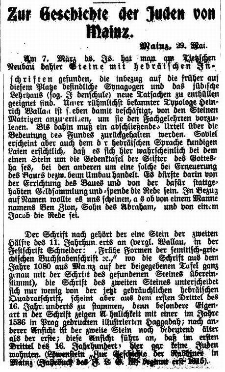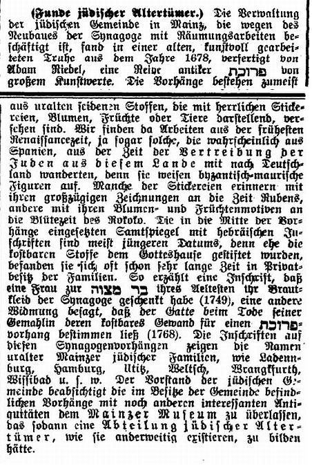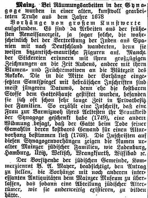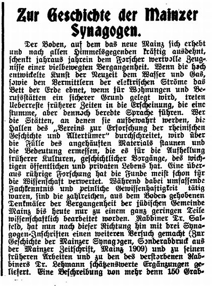 wichtigen Bestandteil der jüdischen Geschichte in Mainz ausmacht, nun