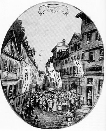 Gemeinde bilden. Aus Frankfurt am Main, Worms, Hanau und anderen Orten zogen