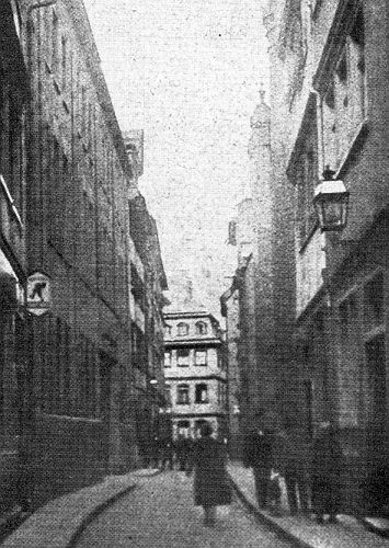 die 1920er Jahre. Zu sehen sind die engen Straßenzüge der geschlossenen