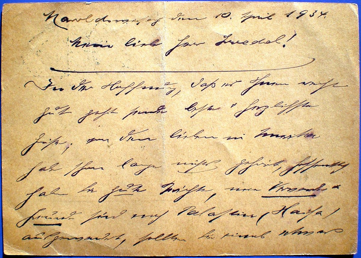 Text auf der Karte. - Maroldsweisach, den 10. April 1934 / Mein lieber Herr ........ !