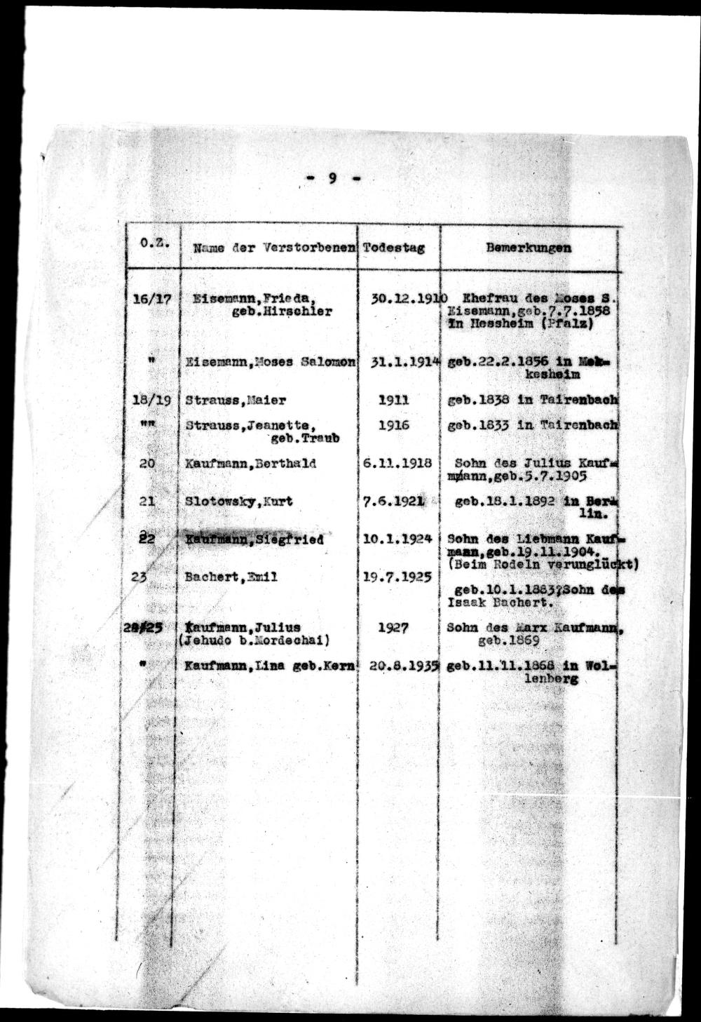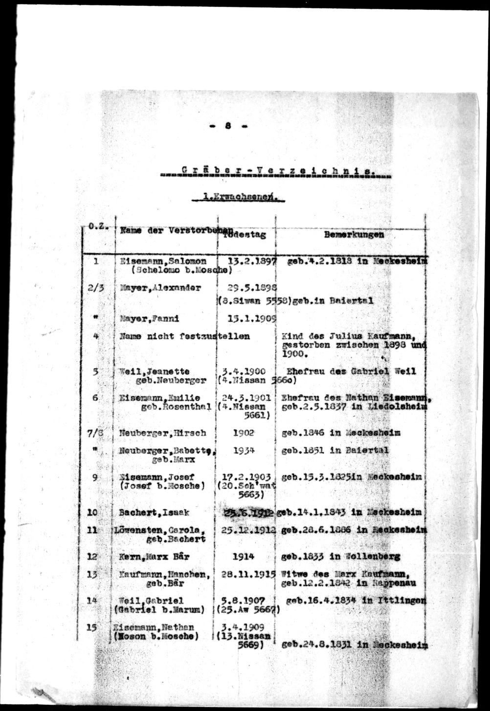 Friedhofes erbaut). Die erste Beisetzung war im Februar 1897 Salomon Eisemann). Ein Gedenkstein für die aus Meckenheim ermordeten Juden