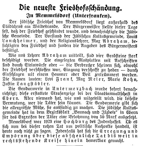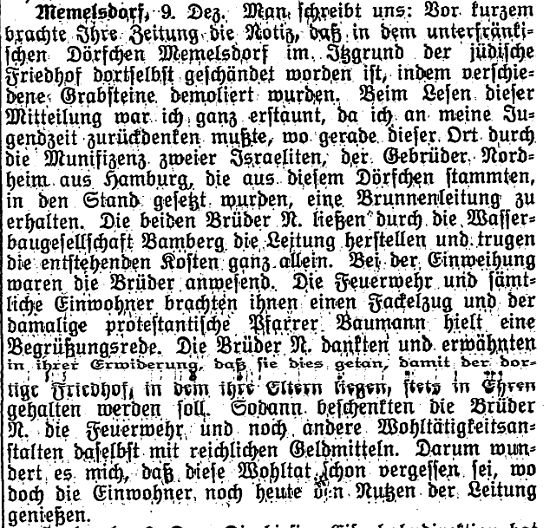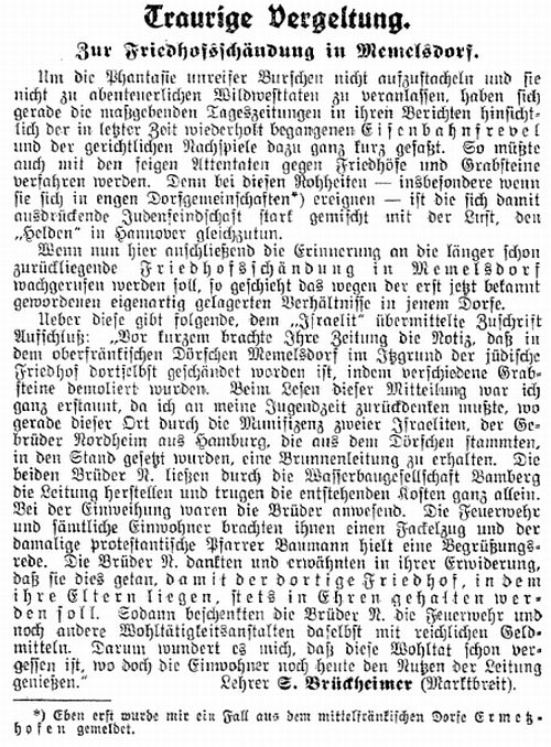 in der Zeitschrift "Der Israelit" vom 16. Dezember 1926: "Mermmelsdorf,