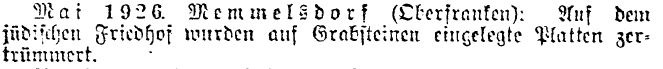 jüdische Friedhof dortselbst geschändet worden ist, indem verschiedene