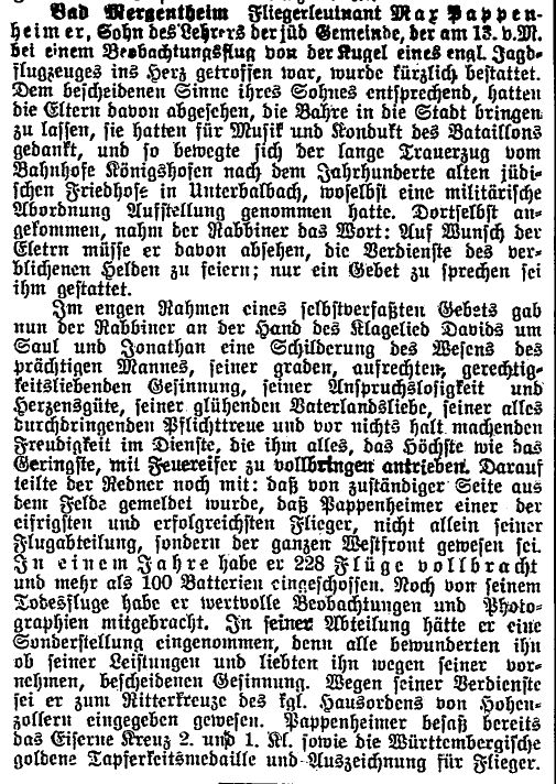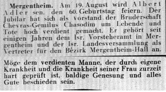 - Rabbiner Dr. Max Sänger verlässt Mergentheim und tritt eine neue
