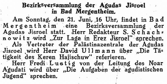 Beiträgen zur jüdischen Geschichte in Bad Mergentheim wurden in jüdischen Periodika