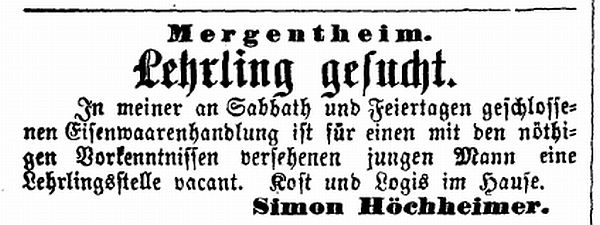Anzeige in der Zeitschrift "Der Israelit" vom 14.