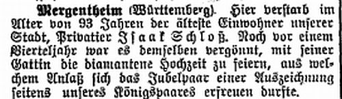 Hirsch wurde am 25. Juli 1878 von Stuttgart nach Mergentheim