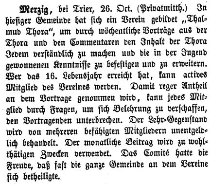 gab es in der Merziger Gemeinde: einen Armen-Verein (Unterstützung von Armen und Durchwanderern,