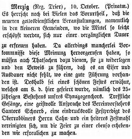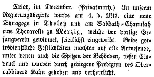 gehörte zum Bezirk des Trierer Oberrabbinates. Als 1840 die Wahl des