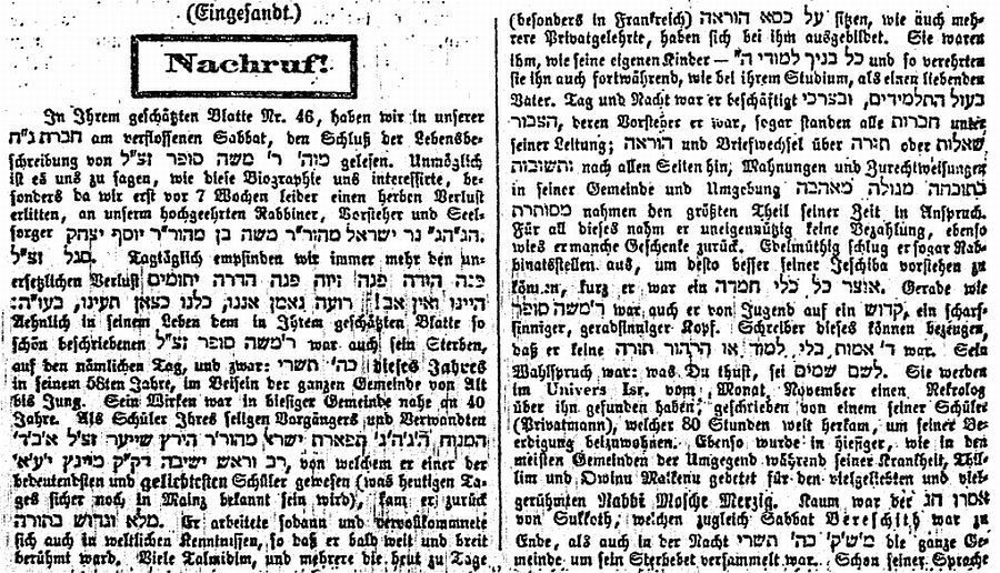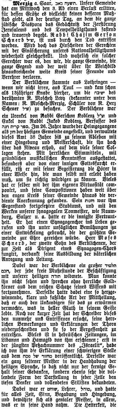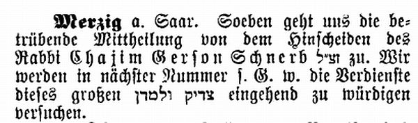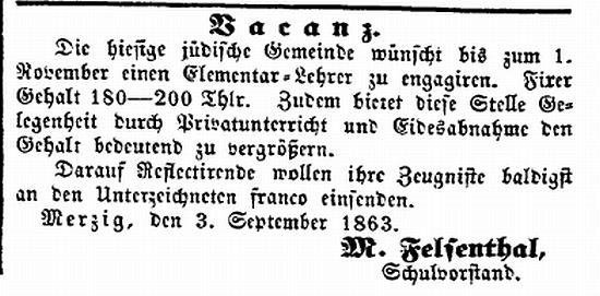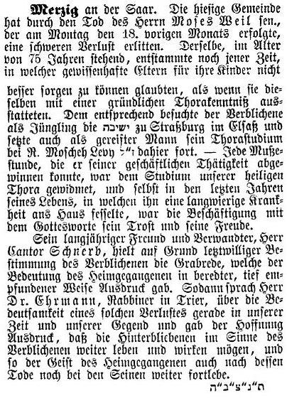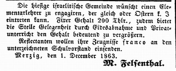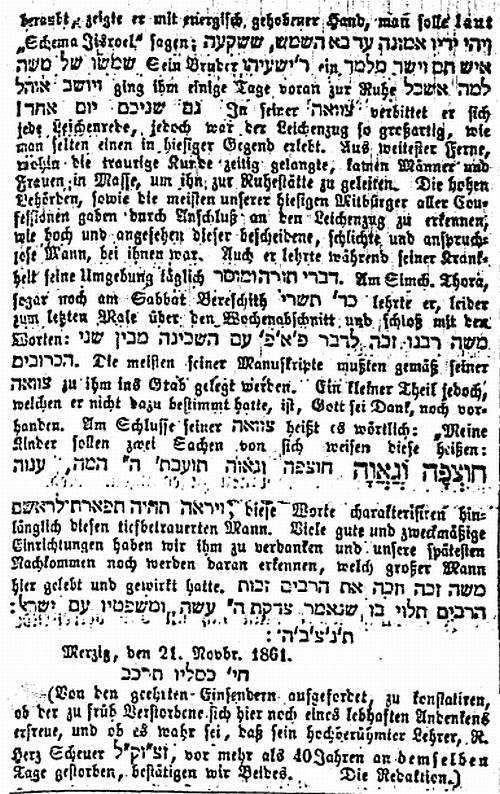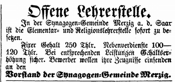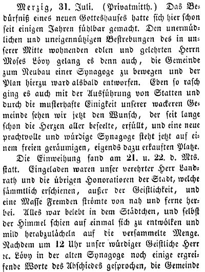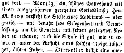 Gemeinde war jahrzehntelang bis zu seinem Tod 1861 Moses Levy (auch Moses Merzig