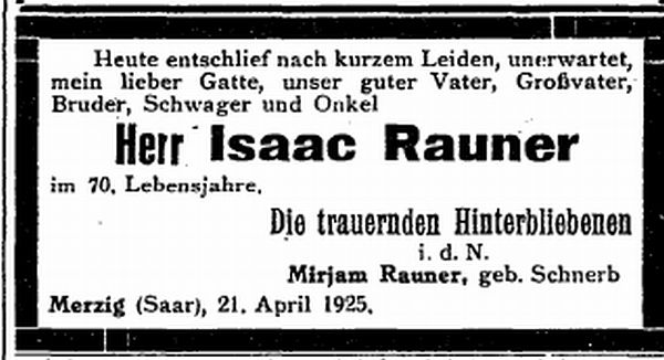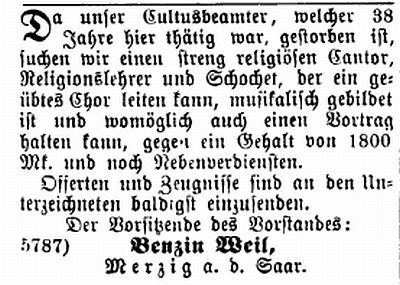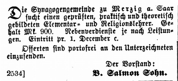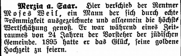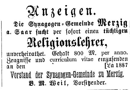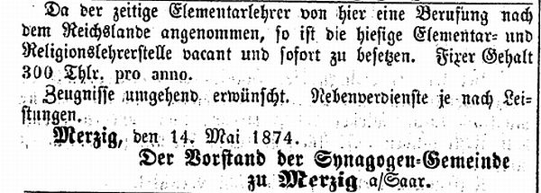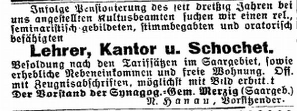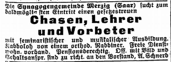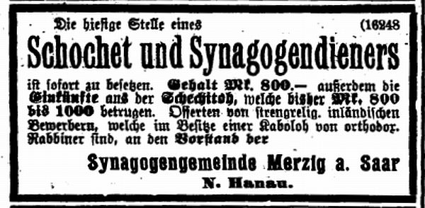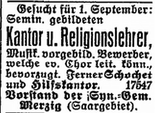 1770. In 1808 there were 83 Jews living in Merzig and 277 by 1905. The
