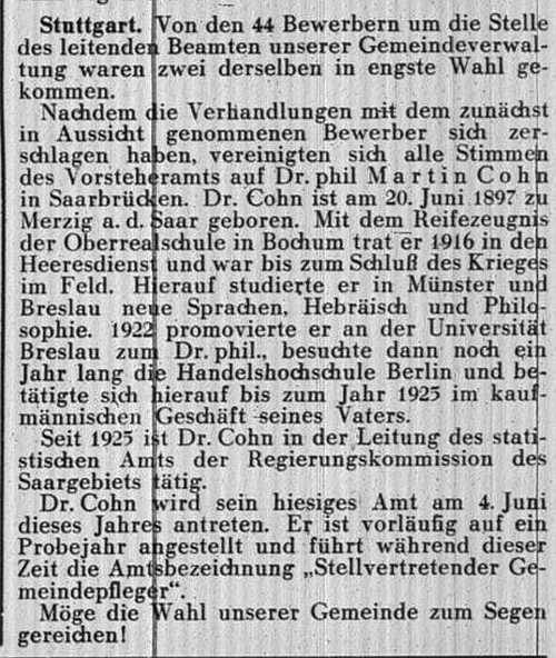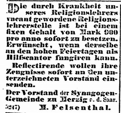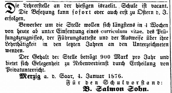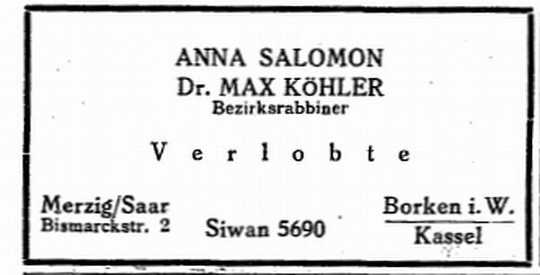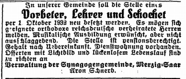 (1926-1930, wechselte nach Saarbrücken) - Max Jankelowitz tätig. Er erteilte im Schuljahr 1932/33 noch 17 Kindern den