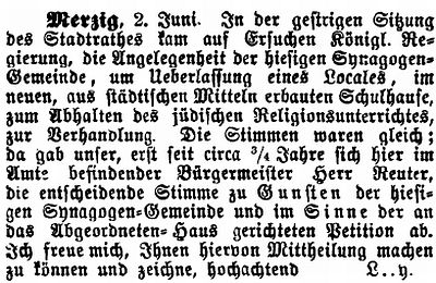 1840 die neue Synagoge erbaut werden konnte (siehe unten). Auch eine
