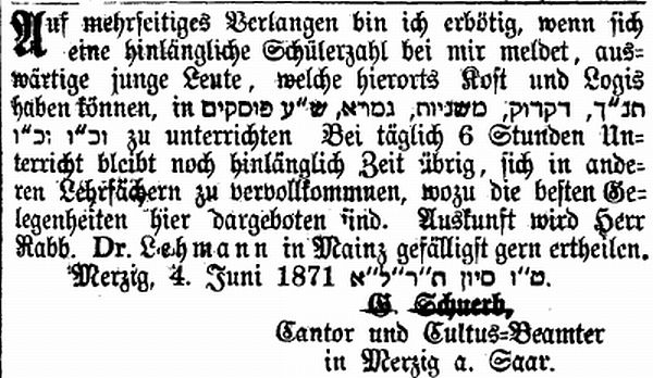 Merzig erwähnt Im 18. Jahrhundert zogen weitere jüdische Familien in Merzig