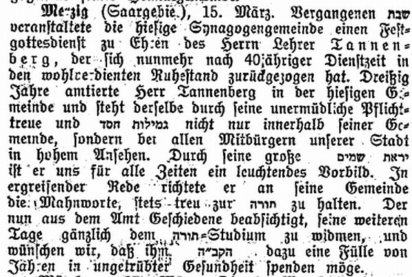 Lehrer Levy Nußbaum) Isaak Tannenberg (siehe unten Artikel zu Lehrer Tannenberg