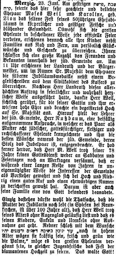 waren die Vorsteher der jüdischen Gemeinde: Naftalie Hanau, A. Baum, M. Weil