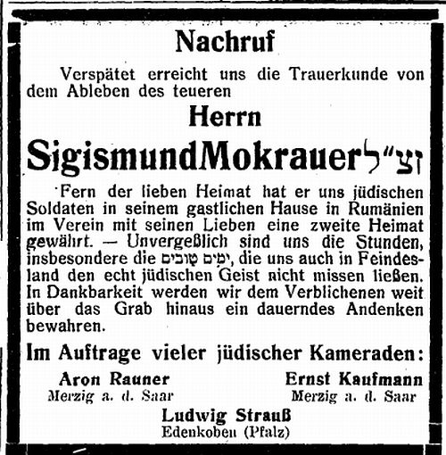 Kaufmann (geb. 5.11.1892 in Merzig, gef. 6.7.1915), Michael Kaufmann (geb.