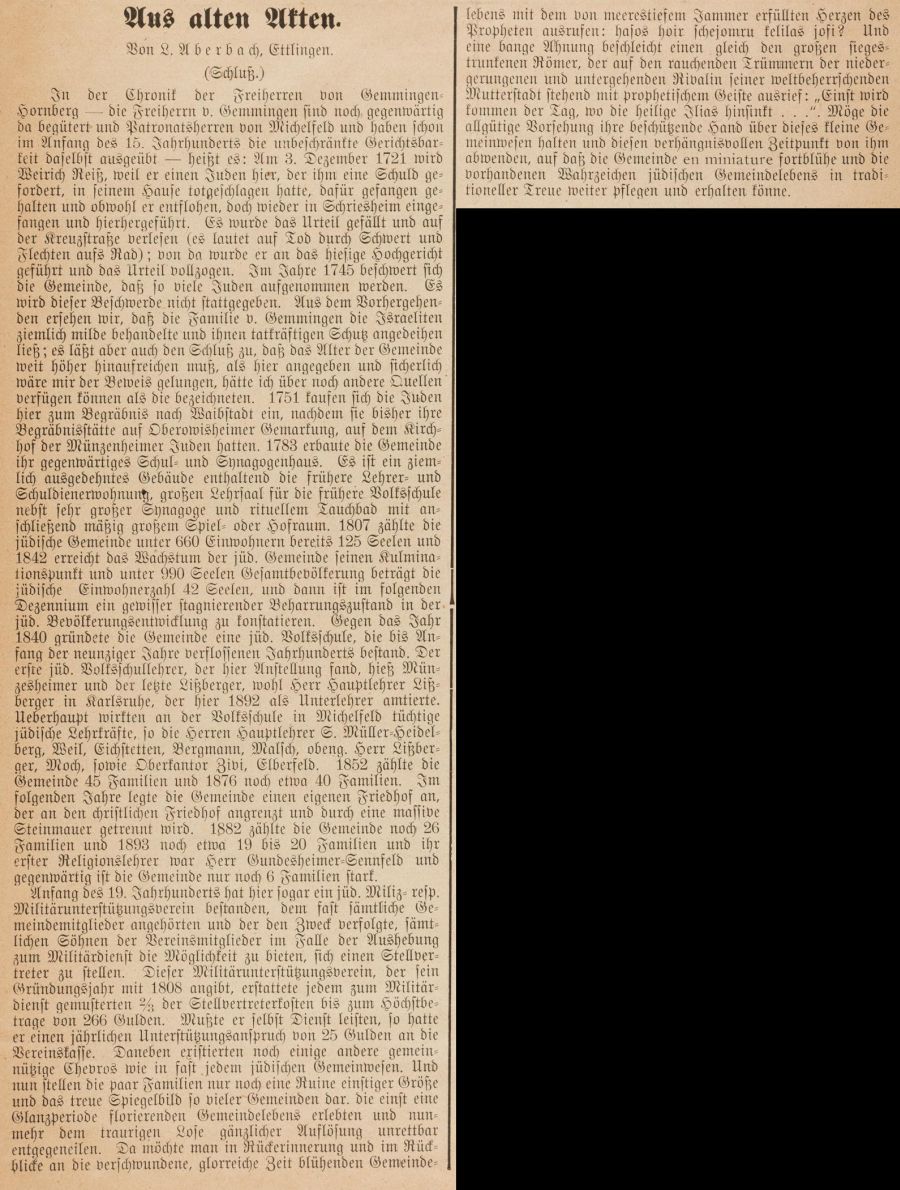 | "Die jüdische Gemeinde in Michelfeld" und "Die Tuchfabrik